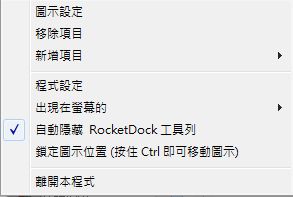 點選"程式設定"會出現如下圖的設定選單,可以設定Dock的位置