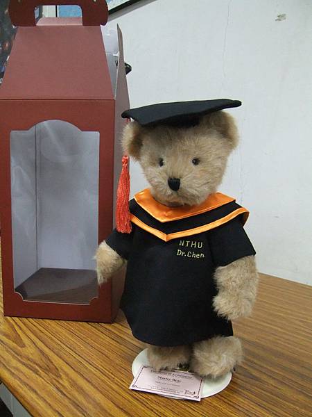 大家送的禮物:一隻有繡上NTHU Dr. Chen 的維尼熊 超特別
