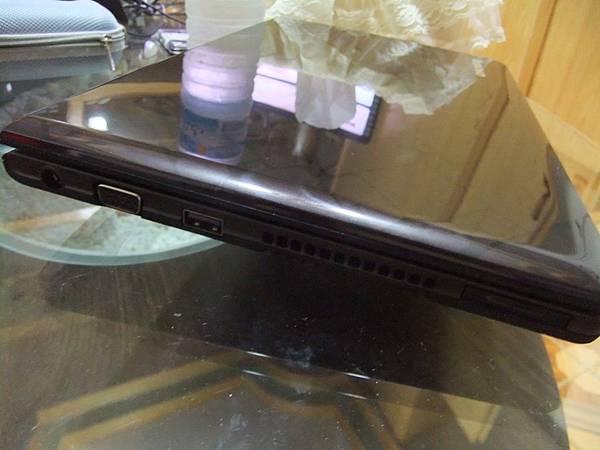 左方有電源孔、usb、d-sub、散熱孔、sd卡插槽