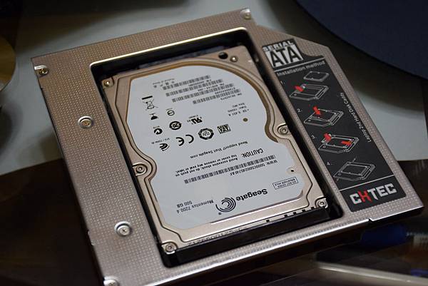 裝上原本的硬碟,將原光碟機的面板拆下來裝在前面,會亮藍光喔