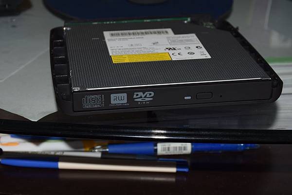 光碟外接盒,有個螺絲要把一隻腳的墊片拆掉後才看得到,也才可以上下扳開