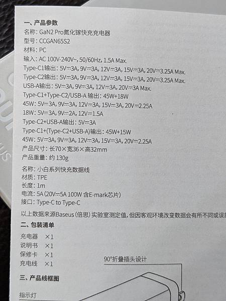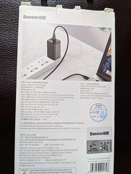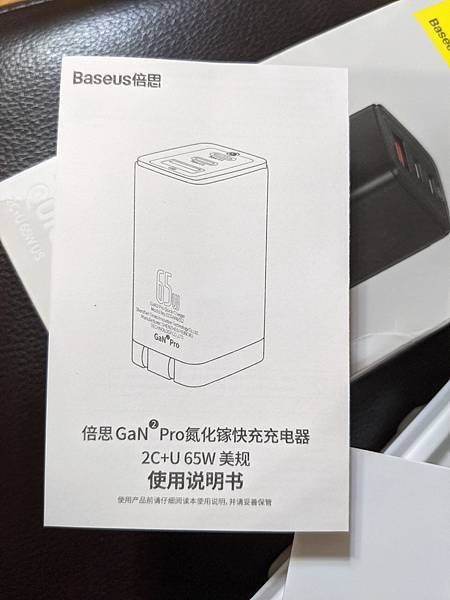 倍思Baseus 65 W GaN2 pro 開箱 附一條1 m 100W5A的充電線