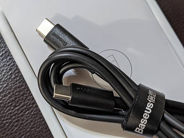 隨附1條100公分小白系列USB-C to USB-C快充傳輸線,並附上印有”Baseus倍思”的魔鬼氈整線帶